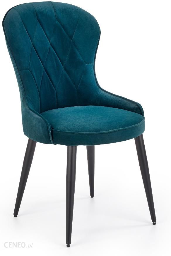 Tapicerowane zielonym aksamitem krzesło K366 VELVET pięknie komponować się będzie z rustykalnym stołem, zapewniając komfort podczas użytkowania.