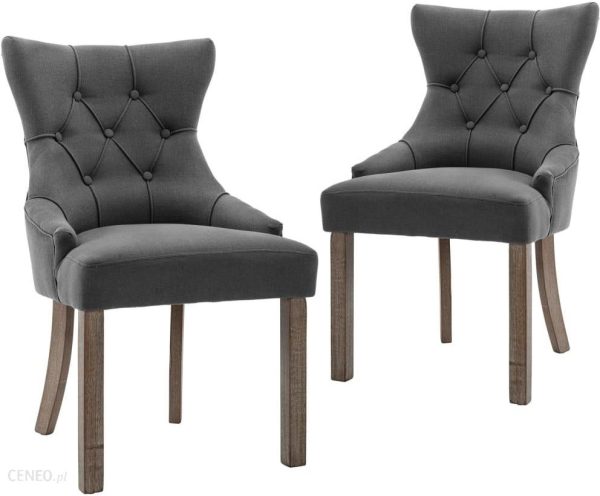 Nadaj nowoczesny i ciepły wygląd swojej jadalni lub kuchni dzięki naszemu zestawowi krzeseł stołowych! Za sprawą ozdobnych guzików tapicerskich te krzesła stołowe będą przyciągać wzrok. Meble obito miękką tkaniną, dzięki czemu wygodnie się na nich siedzi. Zapewniają optymalny komfort wypoczynku dzięki grubo wyściełanym siedziskom i zaokrąglonym oparciom. Co więcej mocne nogi z drewna kauczukowego oferują większą stabilność mebli, gwarantując ich trwałość.