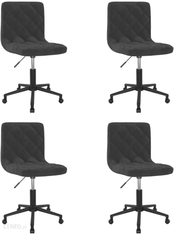 Te obrotowe krzesła stołowe to stylowe meble, idealne do Twojego domu.Obite miękkim w dotyku aksamitem krzesła obrotowe są bardzo wygodne i trwałe. Rama ze stali malowanej proszkowo zapewnia wysoką wytrzymałość i stabilność. Podnośnik gazowy umożliwia regulację wysokości mebla, aby znaleźć wygodne ustawienie. Dodatkowo krzesło to może swobodnie obracać się w zakresie 360 stopni.Kolor: czarny Materiał: malowana proszkowo stal, aksamit (100% poliester)Materiał wypełnienia: gąbka Wymiary całkowite: 40 x 43 x (76-87,5) cm (szer. x gł. x wys.)Wysokość oparcia: 35,5 cm Możliwość obrotu o 360 stopniPodnośnik pneumatyczny Wymagany montaż: takZawartość paczki:4 x krzesło stołowe