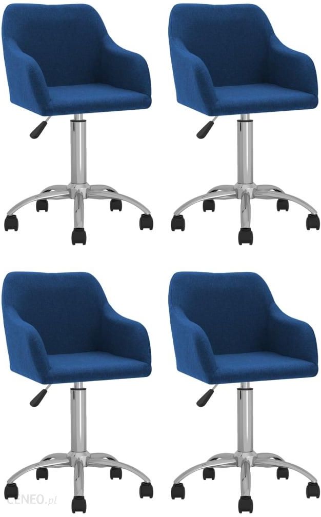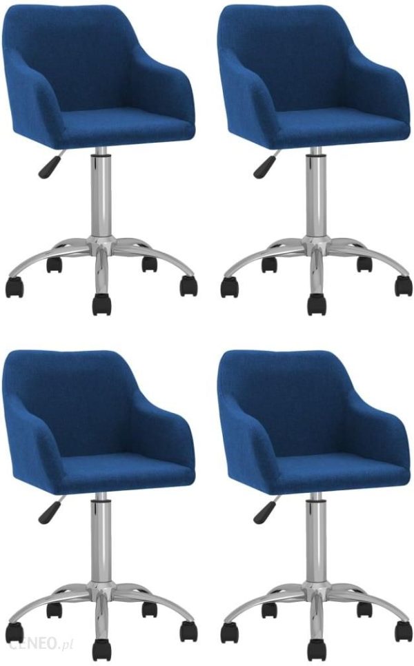 Charakteryzujące się stylowym i nowoczesnym designem, obrotowe krzesła stołowe będą praktycznym dodatkiem do Twojej przestrzeni domowej.Wypełnione grubą gąbką krzesło z pewnością zapewni optymalny komfort siedzenia. Pozwoli Ci ono cieszyć się swoim posiłkiem, czytaniem lub odpoczynkiem w salonie. Podnośnik gazowy umożliwia regulację wysokości siedziska. Mebel ten obraca się swobodnie o 360 stopni, a kółka ułatwiają jego przestawianie. Ponadto wspiera się on na metalowych nogach, co zapewnia większą stabilność.Kolor: niebieskiMateriał: tkanina (100% poliester), sklejka, chromowany metalWymiary całkowite: 53 x 51,5 x (81-93) cm (szer. x gł. x wys.)Wymiary siedziska: 44 x 39,5 cm (szer. x gł.)Wysokość siedziska nad ziemią: 44-56 cmWysokość oparcia: 41,5 cmMożliwość obrotu o 360 stopniPodnośnik pneumatyczny Łatwe przesuwanie dzięki 5 skrętnym kółkomWymagany montaż: takZawartość paczki:4 x krzesło stołowe