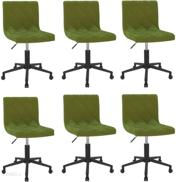 Te obrotowe krzesła stołowe to stylowe meble, idealne do Twojego domu.Obite miękkim w dotyku aksamitem krzesła obrotowe są bardzo wygodne i trwałe. Rama ze stali malowanej proszkowo zapewnia wysoką wytrzymałość i stabilność. Podnośnik gazowy umożliwia regulację wysokości mebla, aby znaleźć wygodne ustawienie. Dodatkowo krzesło to może swobodnie obracać się w zakresie 360 stopni.Kolor: jasnozielonyKolor stali: czarnyMateriał: malowana proszkowo stal, aksamit (100% poliester)Materiał wypełnienia: gąbka Wymiary całkowite: 40 x 43 x (76-87,5) cm (szer. x gł. x wys.)Wysokość oparcia: 35,5 cm Możliwość obrotu o 360 stopniPodnośnik pneumatyczny Wymagany montaż: takZawartość paczki:6 x krzesło stołowe