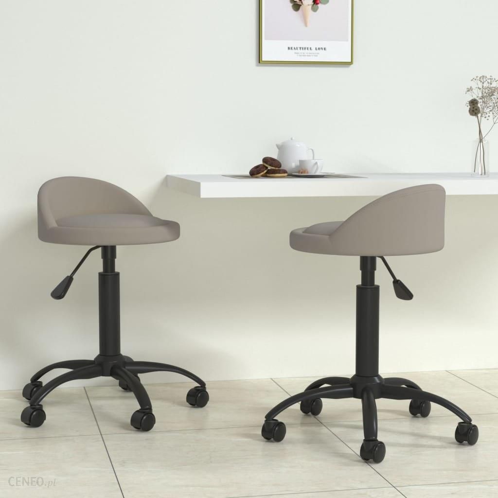 Obrotowe krzesła do jadalni o stylowym wyglądzie będą praktycznym i nowoczesnym dodatkiem do Twojej przestrzeni mieszkalnej.Obite miękkim w dotyku aksamitem krzesła obrotowe z pewnością zapewnią Ci optymalny komfort siedzenia. Dzięki podnośnikowi gazowemu można regulować ich wysokość. Siedzisko obraca się o 360 stopni, oferując pełną swobodę, a kółka ułatwiają przemieszczanie się po pomieszczeniu.Kolor: jasnoszary Materiał: aksamit (100% poliester), stal malowana proszkowo na czarnoWymiary całkowite: 36 x 38 x (54,5-66,5) cm (szer. x gł. x wys.)Możliwość obrotu o 360 stopniPodnośnik pneumatyczny Łatwe przemieszczanie dzięki 5 skrętnym kółkomRegulacja wysokości: takWymagany montaż: takZawartość przesyłki:2 x krzesło stołowe