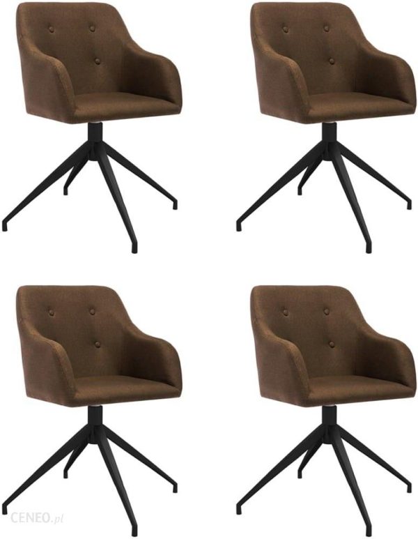Modne, obrotowe krzesła stołowe o nowoczesnym designie będą doskonałym dodatkiem do Twojej przestrzeni życiowej.Obite miękką w dotyku tkaniną krzesła są bardzo wygodne i trwałe. Metalowe ramy zapewniają ich solidność i stabilność. Ponadto obracają się one swobodnie o 360 stopni, dzięki czemu będą idealnym dodatkiem do Twojej jadalni.Kolor: brązowyMateriał: tkanina (100% poliester), lite drewno bukowe, metal, sklejkaMateriał wypełnienia: gąbka Wymiary całkowite: 53 x 51,5 x 86 cm (szer. x gł. x wys.)Szerokość siedziska: 44 cm Głębokość siedziska: 39,5 cmWysokość oparcia: 41,5 cmMożliwość obrotu o 360 stopniWymagany montaż: takZawartość przesyłki:4 x obrotowe krzesło stołowe