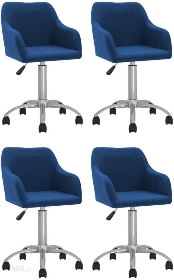 Charakteryzujące się stylowym i nowoczesnym designem, obrotowe krzesła stołowe będą praktycznym dodatkiem do Twojej przestrzeni domowej.Wypełnione grubą gąbką krzesło z pewnością zapewni optymalny komfort siedzenia. Pozwoli Ci ono cieszyć się swoim posiłkiem, czytaniem lub odpoczynkiem w salonie. Podnośnik gazowy umożliwia regulację wysokości siedziska. Mebel ten obraca się swobodnie o 360 stopni, a kółka ułatwiają jego przestawianie. Ponadto wspiera się on na metalowych nogach, co zapewnia większą stabilność.Kolor: niebieskiMateriał: tkanina (100% poliester), sklejka, chromowany metalWymiary całkowite: 53 x 51,5 x (81-93) cm (szer. x gł. x wys.)Wymiary siedziska: 44 x 39,5 cm (szer. x gł.)Wysokość siedziska nad ziemią: 44-56 cmWysokość oparcia: 41,5 cmMożliwość obrotu o 360 stopniPodnośnik pneumatyczny Łatwe przemieszczanie dzięki 5 skrętnym kółkomWymagany montaż: takZawartość przesyłki:4 x krzesło stołowe