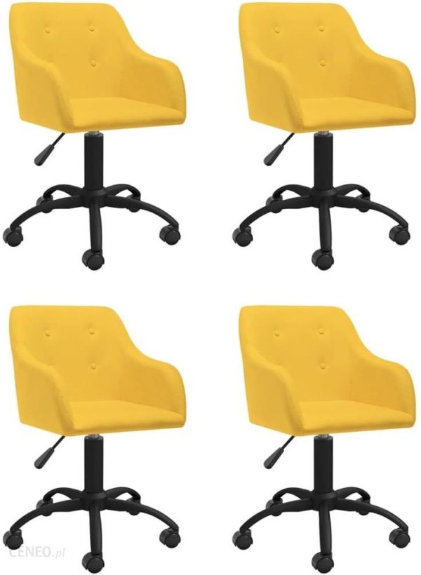 Obrotowe krzesła do jadalni o stylowym wyglądzie będą praktycznym i nowoczesnym dodatkiem do Twojej przestrzeni mieszkalnej.Obite miękką w dotyku tkaniną krzesła obrotowe z pewnością zapewni Ci optymalny komfort siedzenia. Dzięki podnośnikowi gazowemu można regulować ich wysokość. Siedzisko obraca się o 360 stopni, oferując pełną swobodę, a kółka ułatwiają przemieszczanie się po pomieszczeniu.Kolor: żółtyMateriał: tkanina (100% poliester), metalMateriał wypełnienia: gąbka Wymiary całkowite: 53 x 51,5 x (81-93) cm (szer. x gł. x wys.)Wymiary siedziska: 44 x 39,5 cm (szer. x gł.)Wysokość siedziska nad ziemią: 44-56 cmWysokość oparcia: 41,5 cmZaprojektowany z 4 guzikami5 czarnych, skrętnych kółek Możliwość obrotu o 360 stopniPodnośnik pneumatyczny Wymagany montaż: takZawartość przesyłki:4 x krzesło stołowe