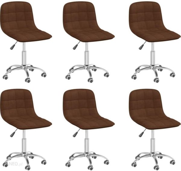 Ten zestaw 6 obrotowych krzeseł stołowych to komplet stylowych mebli, które będą idealne do Twojego domu.Obite tkaniną krzesła obrotowe są bardzo wygodne i trwałe. Rama ze stali chromowanej zapewnia wysoką wytrzymałość i stabilność. Dzięki podnośnikowi gazowemu można wyregulować wysokość siedziska, by zapewnić sobie wygodę. Dodatkowo krzesło może swobodnie obracać się o 360 stopni, a kółka pozwalają na poruszanie się w różnych kierunkach.Kolor: brązowyMateriał: chromowana stal, tkanina (100% poliester)Materiał wypełnienia: gąbka Wymiary całkowite: 42,5 x 45 x (69-80,5) cm (szer. x gł. x wys.)Głębokość siedziska: 35 cm Skrętne kółkaMożliwość obrotu o 360 stopniPodnośnik pneumatyczny Wymagany montaż: takZawartość przesyłki:6 x krzesło stołowe