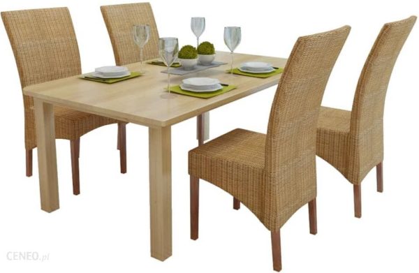 Zestaw mebli rattanowych wykonany na styl tropikalny będzie świetnym dodatkiem do wystroju. Ramy z drewna i prawdziwy rattan czynią meble solidnymi oraz ładnie wyglądającymi. Pokryte rattanem krzesła będą bardzo wygodne. Jeśli szukasz mebli do uzupełnienie wystroju kuchni lub jadalni, ten atrakcyjny zestaw będzie idealny. W skład przesyłki wchodzą 4 krzesła. Uwaga: krzesła zostały ręcznie wykonane z prawdziwego rattanu, dlatego mogą występować drobne różnice w kolorze.
