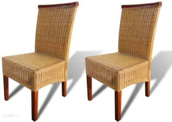 Zestaw mebli rattanowych wykonany na styl tropikalny z ozdobnym, drewnianym elementem będzie świetnym dodatkiem do wystroju. Ramy z drewna i prawdziwy rattan czynią meble solidnymi oraz ładnie wyglądającymi.Pokryte naturalnym rattanem krzesła są bardzo wygodne. Jeśli szukasz mebli do uzupełnienie wystroju kuchni lub jadalni, ten zestaw ręcznie wyplatanych krzeseł będzie idealny. W skład przesyłki wchodzą 2 krzesła.Uwaga: krzesła zostały ręcznie wykonane z prawdziwego rattanu, dlatego mogą występować drobne różnice w kolorze.Materiał: drewno mango + rattanWymiary krzasła: 47 x 50 x 97 cm (szer. x gł. wys.)Szerokość siedziska: 47 cm Głębokość siedziska: 43 cmWysokość siedziska nad ziemią: 47 cm Przesyłka obejmuje 2 krzesła