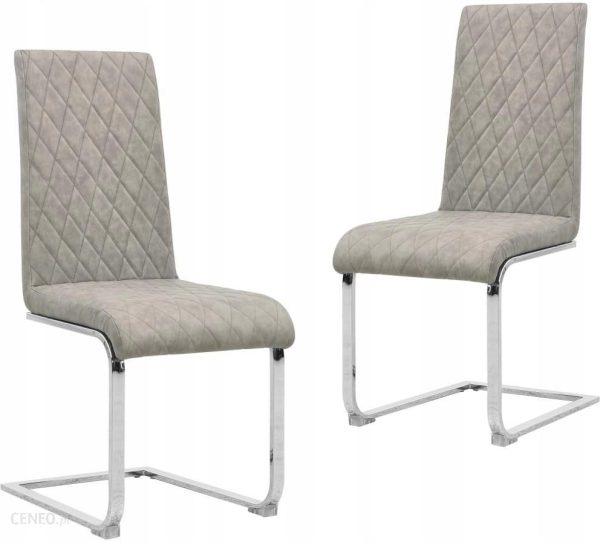 Krzesła stołowe, wspornikowe, 2 szt., jasnoszare, ekoskóraNasz zestaw wspornikowych krzeseł stołowych prezentuje elegancki wygląd o prostych liniach, który idealnie pasuje do wnętrza Twojego domu lub biura.Grubo wyściełane siedzisko oferuje najwyższy komfort siedzenia oraz znakomite podparcie. Prążkowane obicie wykonano z mocnej i trwałej skóry syntetycznej, która nadaje krzesłom luksusowy wygląd i charakter. Ten zestaw o konstrukcji wspornikowej jest lekki i solidny za sprawą mocnej ramy z żelaza.Kolor: jasnoszary Materiał: sztuczna skóra (70% PU, 20% poliester, 10% bawełna), żelazoWymiary: 43 x 58 x 98,5 cm (szer. x gł. x wys.)Wymiary siedziska: 41,5 x 42 cm (szer. x gł.)Grubość siedziska: 5 cmWysokość siedziska nad ziemią: 49 cmWysokość oparcia: 56 cmWymagany montaż: takZawartość przesyłki:2 x krzesło stołoweMaksymalne obciążenie: 110 kg