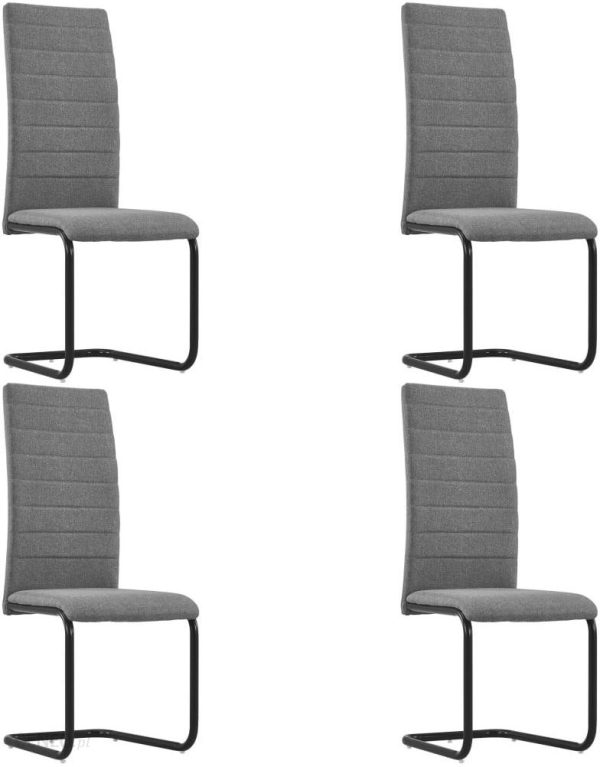 Wprowadź odrobinę nowoczesności do swojej jadalni lub salonu dzięki naszym wygodnym i stabilnym krzesłom wspornikowym! Tapicerowane trwałą tkaniną meble zapewniają komfort. Zestaw 4 krzeseł stołowych został estetycznie i ergonomicznie zaprojektowany, aby wprowadzić przytulny akcent do Twojego domu.Meble oferują wygodne miejsce do zjedzenia kolacji z rodziną w jadalni lub poczytania i odpoczynku w salonie. Dzięki miękkim siedziskom i oparciom nasz zestaw krzeseł z pewnością zapewni Ci optymalny komfort siedzenia. Ponadto malowane proszkowo, metalowe nogi zwiększają jeszcze ich stabilność oraz wytrzymałość.Przesyłka obejmuje 4 krzesła stołowe.Kolor: jasnoszary Materiał: tapicerka z tkaniny + malowane proszkowo, metalowe nogiWymiary: 42 x 53,5 x 99,5 cm (szer. x gł. x wys.)Głębokość siedziska: 42 cmWysokość oparcia: 54 cmWysokość siedziska nad ziemią: 46 cm Przesyłka obejmuje 4 krzesła stołoweMateriał: Poliester: 100%