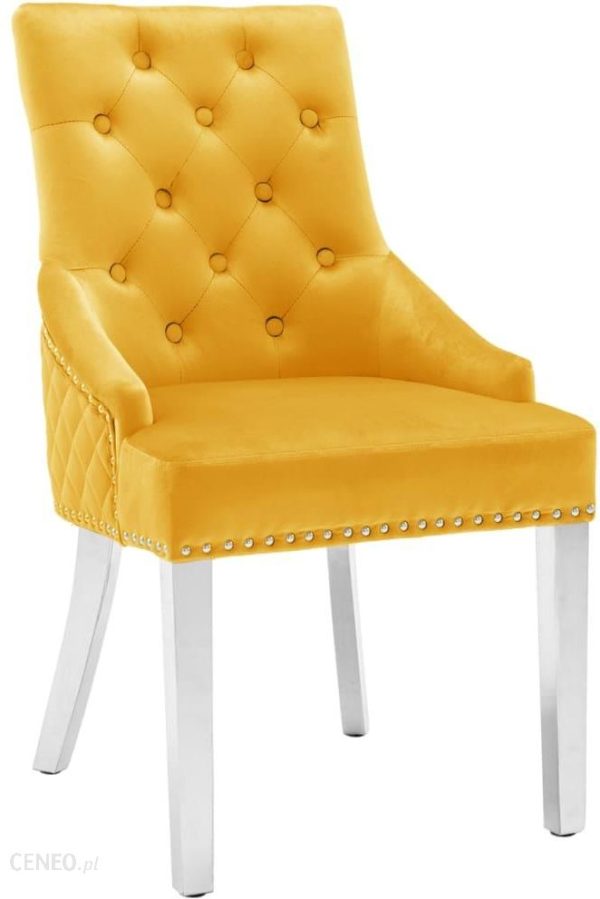 Dodaj imponujący element do wystroju swojego wnętrza dzięki temu krzesłu do jadalni! To krzesło kuchenne jest tapicerowane miękkim aksamitem i wyściełane grubą warstwą gąbki, dzięki czemu wygodnie się na nim siedzi. Drewniana rama i nóżki ze stali nierdzewnej zapewniają wysoką wytrzymałość i stabilność. Dodatkowo ozdobna zawieszka w kształcie lwa i guziki są ładnym uzupełnieniem całości.