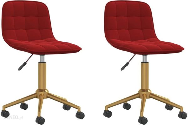 Ten zestaw krzeseł stołowych to stylowy komplet mebli, idealny do Twojego domu.Obite miękkim w dotyku aksamitem krzesła obrotowe są bardzo wygodne i trwałe. Rama ze stali malowanej proszkowo zapewnia wysoką wytrzymałość i stabilność. Dzięki podnośnikowi gazowemu można regulować wysokość ich siedziska, by zapewnić Ci wygodę. Dodatkowo krzesło może swobodnie obracać się o 360 stopni, a kółka pozwalają poruszać się w różnych kierunkach.Kolor: winna czerwieńKolor stali: złotyMateriał: malowana proszkowo stal, aksamit (100% poliester)Materiał wypełnienia: gąbka Wymiary całkowite: 42,5 x 45 x (68-82,5) cm (szer. x gł. x wys.)Głębokość siedziska: 35 cm Skrętne kółkaMożliwość obrotu o 360 stopniPodnośnik pneumatyczny Wymagany montaż: takZawartość paczki:2 x krzesło stołowe