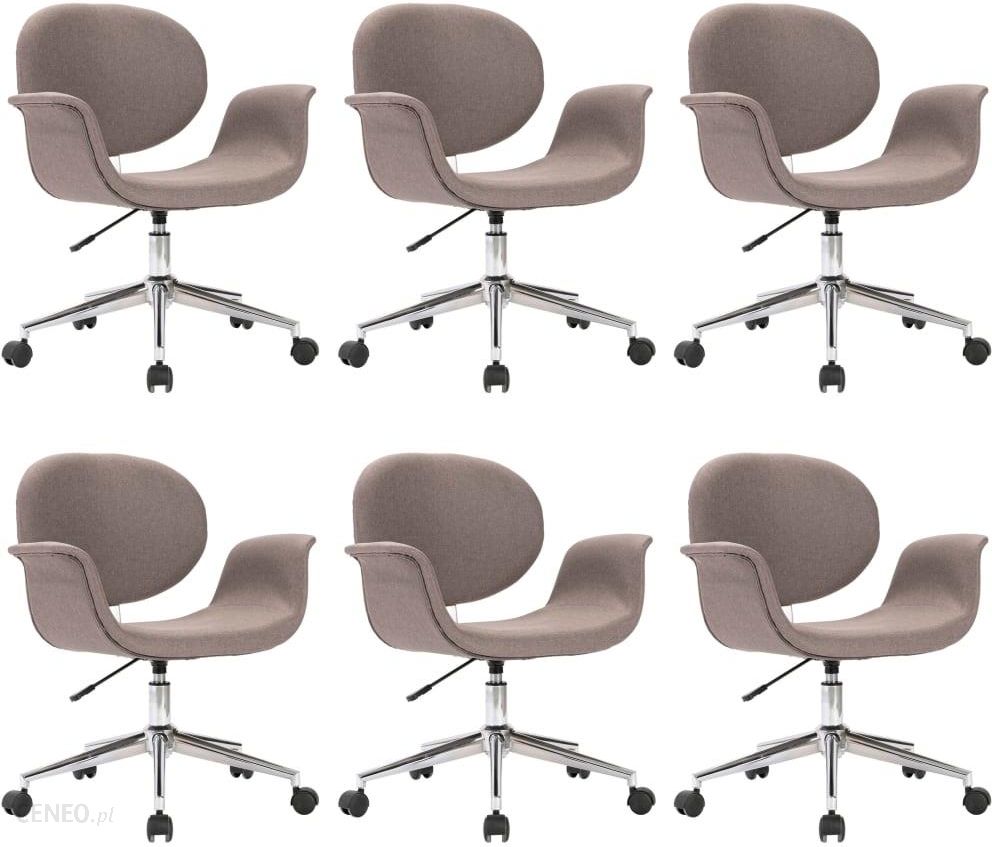 Ten zestaw 6 obrotowych krzeseł, prezentujący stylowy i współczesny design, jest idealnym, praktycznym i nowoczesnym dodatkiem do dowolnego salonu, sypialni, kącika wypoczynkowego lub biura.Mebel zapewnia wygodne miejsce dla rodziny, by zjeść kolację w jadalni lub poczytać i odpocząć w salonie. Siedzisko i oparcie są ergonomiczne, tapicerowane miękką tkaniną i grubo wyściełane pianką, dzięki czemu krzesło jest bardzo wygodne. Metalowe nogi dopełniają jego trwałość oraz estetyczny wygląd. Krzesło obraca się o 360 stopni i ma mechanizm regulacji wysokości z podnośnikiem gazowym.Te krzesła stołowe są także proste w montażu.Kolor: szarobrązowy (taupe)Materiał: tkanina (90% bawełna, 10% poliester), sklejka, metalWymiary całkowite: 67 x 62 x (80-87,5) cm (szer. x gł. x wys.)Szerokość siedziska: 42 cmGłębokość siedziska: 44 cm Wysokość siedziska nad ziemią: 42-49,5 cmWysokość oparcia: 44 cmWysokość podłokietników: 17 cmŁatwe przesuwanie dzięki plastikowym kółkomWymagany montaż: takZawartość paczki:6 x krzesło stołowe