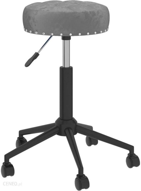 Charakteryzujące się stylowym i nowoczesnym designem, obrotowe krzesło stołowe będzie praktycznym dodatkiem do Twojej przestrzeni domowej.Obite miękkim w dotyku aksamitem krzesło z pewnością zapewni optymalny komfort siedzenia. Możesz cieszyć się swoim posiłkiem, czytaniem lub odpoczynkiem w salonie. Podnośnik gazowy umożliwia regulację wysokości siedziska. Mebel ten obraca się swobodnie o 360 stopni, a kółka ułatwiają jego przestawianie. Ponadto to krzesło obrotowe wspiera się na stali malowanej proszkowo, co oferuje większą stabilność.Kolor: ciemnoszaryMateriał: aksamit (100% poliester), sklejka, stal malowana proszkowoWymiary siedziska: 32 x 32 cm (szer. x gł.)Wysokość siedziska nad ziemią: 48 – 60 cmDługość nóżek: 26 cmMożliwość obrotu o 360 stopniPodnośnik pneumatyczny Łatwe przesuwanie dzięki 5 skrętnym kółkomWymagany montaż: tak